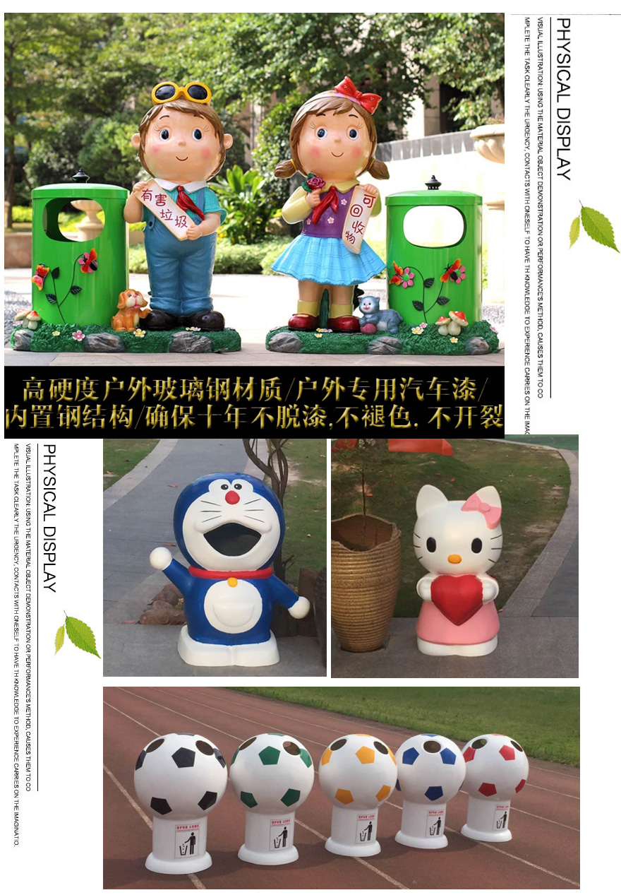產(chǎn)品材質(zhì):玻璃鋼垃圾箱強(qiáng)度高耐高低溫耐酸堿,耐腐蝕,不褪色、卡通外型美觀,太陽暴曬下不變形,抗紫外線,易清洗,操作方便,果皮箱收集容量大,堅(jiān)固耐用使用壽命長,果皮桶無盜用和回收價值。采用模具一次成型。有鍍鋅板內(nèi)膽。