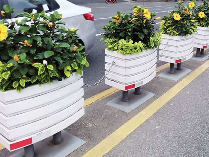 在道路綠化時(shí),要保證道路有足夠的空間。在選擇道路花箱時(shí)就需要注意花箱的尺寸